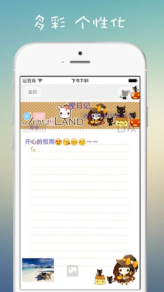 日記: 寫下每一份觸碰心靈的感受,記錄點(diǎn)滴生活。60張精美信紙,emoji表情,日記配圖,讓一切都顯得如此美麗生動(dòng)。