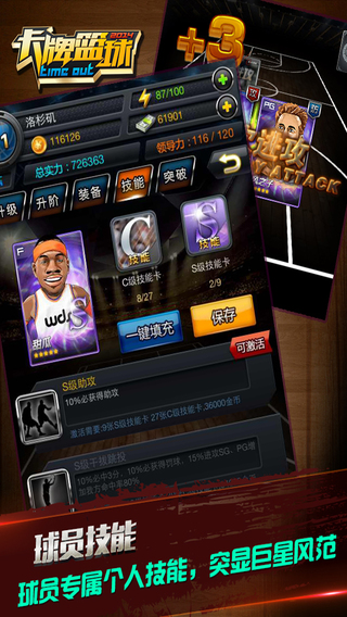 游戲中所有球員數(shù)據(jù)都是來自于美職籃賽場,球員的技能,球員實力根據(jù)該球員上賽季的賽場表現(xiàn)而進行評級。由低到高分別為D-C-B-A-S,球員可以通過劇情賽、選秀市場獲得,想組合任何陣容都隨您所意。