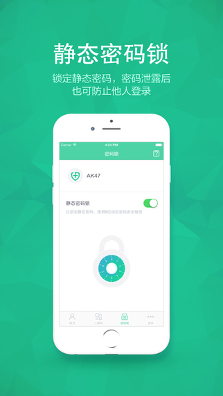 360賬號(hào)衛(wèi)士app還有動(dòng)態(tài)密碼功能,可使用360帳號(hào)衛(wèi)士提供的6位動(dòng)態(tài)密碼登錄360應(yīng)用,同時(shí)支持靜態(tài)密碼鎖功能,鎖定后靜態(tài)密碼失效,只能使用動(dòng)態(tài)密碼登錄。【軟件特點(diǎn)】