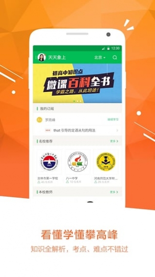 百強名校,萬位名師:全國各省市百強名校萬位名師入駐在線教育平臺,一個不讀名校也讓你能師從名師的學習助手;