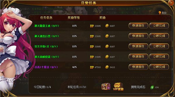 點(diǎn)擊立即完成按鈕后消耗完成石或者魔石直接完成當(dāng)前任務(wù)。