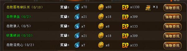 顯示玩家已經(jīng)領(lǐng)取的委托,最多顯示3個。