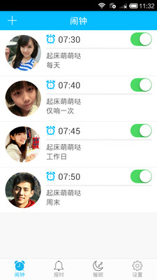 萌萌鬧鐘app,萌妹暖男叫你起床,你還能睡得著嗎?萌妹聲音溫柔甜美,一定要hold住哦!暖男聲音溫暖磁性,小心耳朵懷孕哦!角色扮演,體驗(yàn)當(dāng)皇上,少爺,公主,女王的感覺!【軟件特點(diǎn)】