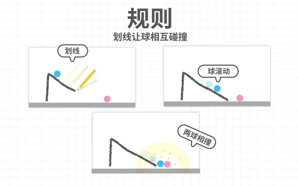 要想過關(guān),只需要使藍球和紅球相撞。自由劃線可以讓球滾動,你的想象力是過關(guān)的關(guān)鍵。