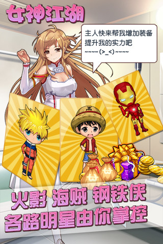 《女神江湖》是一款SRPG網(wǎng)絡(luò)卡牌游戲,以拯救女神,生孩子擴(kuò)大家族為主題。女神原畫結(jié)合Q版孩子卡,以動(dòng)漫形式呈現(xiàn),吸引大批宅男、動(dòng)漫迷、女神進(jìn)入游戲。游戲系統(tǒng)中包括收集、養(yǎng)成女神卡、孩子卡。通過培養(yǎng)激活女神的技能和孩子的稱號(hào),提高攻擊力(血量)和防御能力(身價(jià))。在戰(zhàn)斗中需要合理搭配女神與孩子的陣容來贏得勝利,屬于弱操作強(qiáng)策略的RPG游戲。