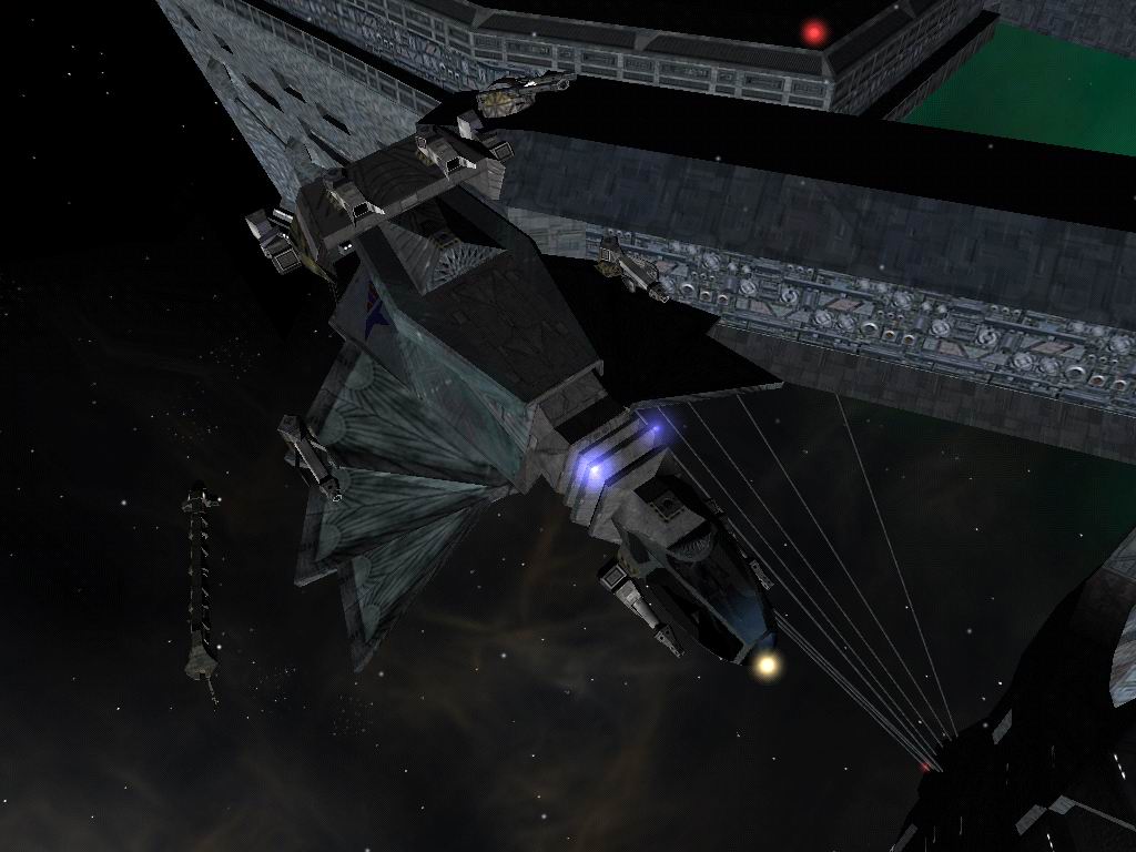 敵人顯然沒想到我們來得這么快,Ashcroft正在指揮將異形水晶卸到小飛船上。我和King的兩架戰(zhàn)機(jī)沖入敵群,打了他們一個(gè)措手不及??上У氖?,當(dāng)殲滅大部分?jǐn)硻C(jī)時(shí),才發(fā)現(xiàn)Ashcroft已經(jīng)啟動(dòng)巡航引擎遁入深空了,我們趕緊尾隨追去。追著追著,Ashcroft突然掉轉(zhuǎn)船頭,他身后出現(xiàn)了大批增援,我和King以二敵眾,非常吃力!幸虧LSF援軍及時(shí)趕到才圍殲了這批敵人,并將Ashcroft連同他的逃生艙都捕獲了(按B鍵,注意有時(shí)間限制)。我們由傳送門回到紐約星系,剛剛傳送出來就遭到一批敵機(jī)的攔截。這批敵人的戰(zhàn)斗力明顯強(qiáng)很多,雖然只有四五架,但我們幾乎吃不下它們!逃過這道險(xiǎn)關(guān),我們降落進(jìn)Missouri戰(zhàn)列艦,終于將Ashcroft成功帶回給朱妮了。其間的兇險(xiǎn),尤其是回來途中所遇敵機(jī)的強(qiáng)大戰(zhàn)斗力,自由聯(lián)盟的人肯定想象不到。不過我也不想說了,趕緊用積攢的錢購買了一艘Defender重型戰(zhàn)機(jī),并配備上更高級(jí)的攻擊武器和雷、煙霧彈等裝備。