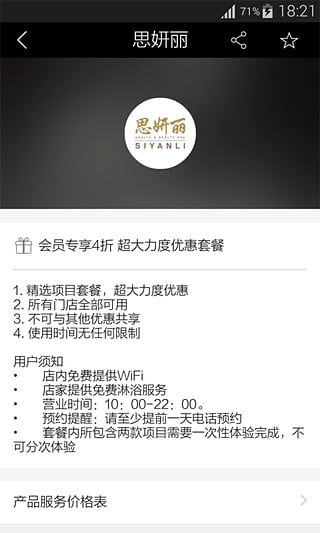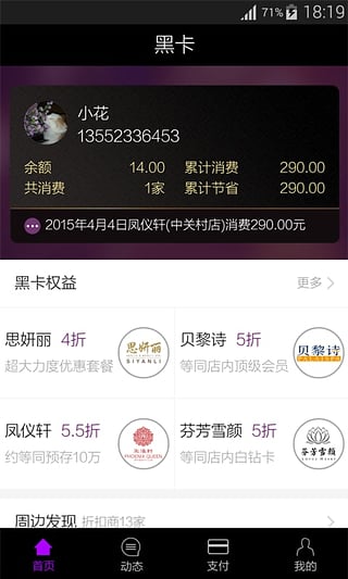 黑卡,集多家高端會(huì)員卡功能于一身的通用高級(jí)別會(huì)員卡,在這里,用最少的預(yù)存可享受店里頂級(jí)的折扣和VIP待遇,更能與好友互動(dòng),實(shí)時(shí)分享你的尊貴體驗(yàn)。產(chǎn)品匯集全京城多家高端品牌美容會(huì)所,擁有上百家門店,暢享全方位的美麗呵護(hù)。【軟件特點(diǎn)】
