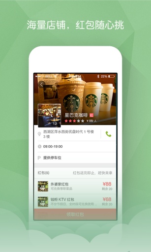 云淘紅包是基于大數(shù)據平臺的新型消費平臺、是新的結算、優(yōu)惠券平臺。吃喝玩樂均在其中,登陸即可免費領取體驗式紅包。在云淘,你可以拿到星巴克咖啡體驗券,也可以消費換取等額健身體驗卡券,還可以得到洗車養(yǎng)護紅包,只有你想不到,沒有你在云淘找不到的紅包。【軟件特點】