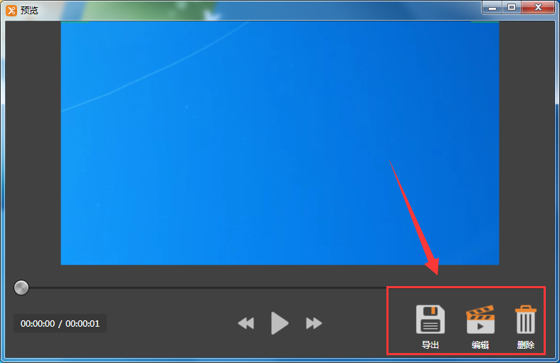 5、之后它剪輯師讓我們預覽錄制的視頻,如果感覺不錯那么點擊“導出”將其保存就可以了,如果還想對其進行加工,那么點擊“編輯”即可來到視頻編輯界面。