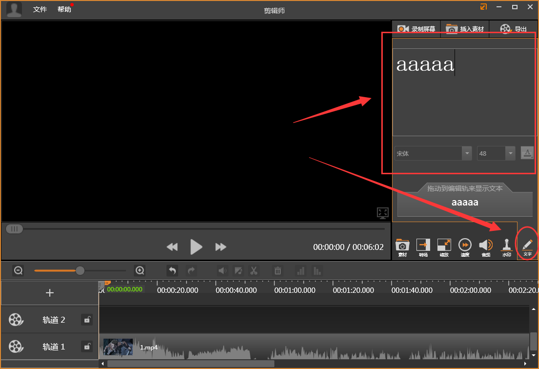 4、接著在剪輯師界面找到“文字”功能并打開,在“文字”界面輸入我們想要添加的話,還可以在調(diào)整一下文字的字體、大小等屬性;