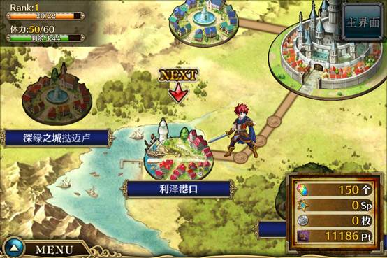 《十字召喚師》進入大地圖之后就能看到能前往的據(jù)點或城鎮(zhèn),跟著指示走就能一步步完成主線劇情!每進行一個副本都需要消耗一定體力,體力槽顯示于地圖界面左上角,隨著時間逐漸恢復(fù),也可以消耗召喚石馬上補充。
