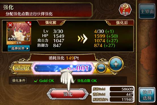 《十字召喚師》每個伙伴的招式都不同:有遠程、近戰(zhàn)、回復(fù),魔法等。玩家只要在適當?shù)臅r候點擊屏幕操作,角色就可以使出普通攻擊、必殺技、奧義等等多樣的招式,其中奧義的招式非常華麗。在戰(zhàn)斗中,任務(wù)向左側(cè)是你的必殺值,右側(cè)紅色的是你的奧義值,必殺值回復(fù)的比較快,滿了以后就可以釋放必殺技,而奧義值需要在戰(zhàn)斗中獲得。其中游戲還可以進行角色的強化和覺醒。角色的成長可以通過戰(zhàn)斗勝利獲得的經(jīng)驗或者通過獲得的強化點和金幣進行直接強化,每次戰(zhàn)斗得到的點數(shù)和金錢可以讓新角色馬上加入主力團隊戰(zhàn)斗,因為戰(zhàn)斗本身可以升級,而且通過自由關(guān)卡等的也可以獲得點數(shù),所以點數(shù)的獲得并不難。