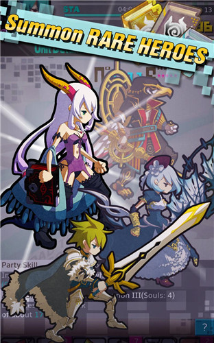 游戲的初期玩家可以選擇四種不同職業(yè)的勇者,分別是攻擊力和防御力相對(duì)平衡、血量也多的劍士,回復(fù)能力高但是攻擊力很低的輔助型的法師,攻防和血量都很平均的弓箭手還有強(qiáng)化攻擊力但是血量相對(duì)較少的騎士,初期推薦使用的是劍士和弓箭手,各方面的參數(shù)都比較均衡。游戲一開(kāi)始會(huì)有詳盡的新手教程,不會(huì)日文也完全沒(méi)有問(wèn)題,新手教程完了之后基本操作就可以輕松掌握了。