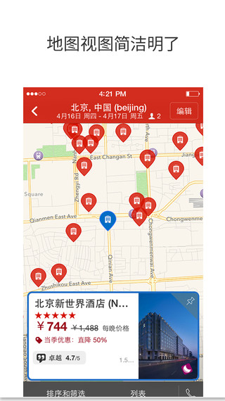 - 地圖視圖簡(jiǎn)潔實(shí)用,探索您周邊的所有酒店更加方便。