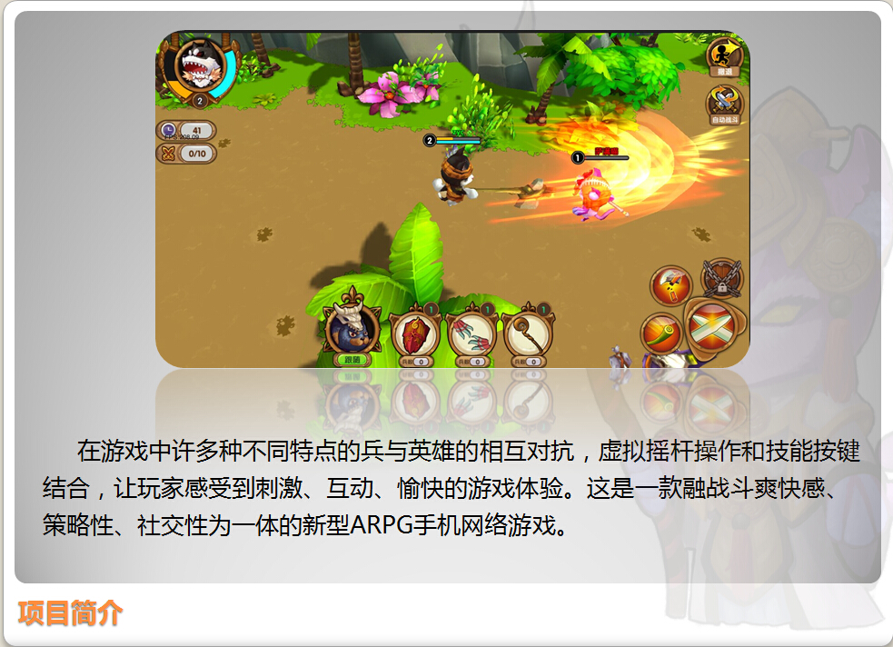 《小小喵汪》是U3D引擎研發(fā)的Q版動物風(fēng)、策略型3D-RPG類攻防手機游戲。以架空寵物世界為故事背景,集動作手游,攻防戰(zhàn)占領(lǐng)系統(tǒng)玩法,劇情副本,玩家之間策略互動等要素精心打造。游戲角色設(shè)計為Q版的貓、狗擬人化,場景風(fēng)格獨特華麗,流暢而富有打擊感的動作,再加上豐富的策略選擇。游戲摒除了傳統(tǒng)ARPG的關(guān)卡推圖玩法,取代以類COC的異步策略對抗為主要玩法。玩家主要資源獲取途徑就是通過攻城搶奪其他玩家每當(dāng)您攻打贏對手都會在對方的城里留下足跡,并且具有養(yǎng)成系統(tǒng)給玩家增添互動性和趣味性。