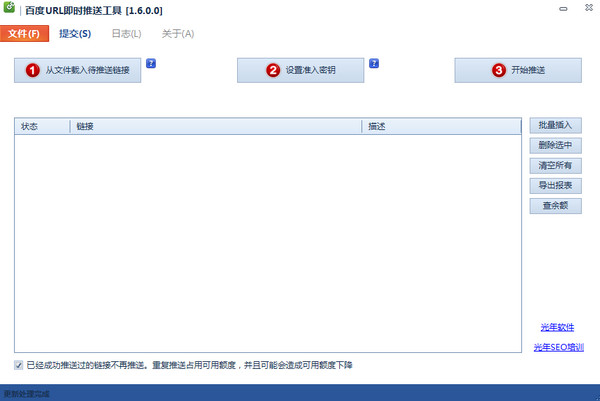 百度url即時(shí)推送工具是一款人氣百度url即時(shí)推送小工具。該工具不僅小巧綠色,還可以幫助用戶快速將網(wǎng)頁推送給百度,也許運(yùn)氣好,百度一分鐘即可收錄提交的網(wǎng)頁。百度url即時(shí)推送工具可以幫助用戶快速將百度沒有收錄的、或者是新做的頁面百度未抓取的方便的提交給百度的的url批量提交工具。