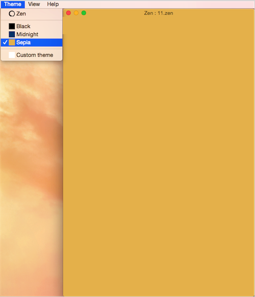 Zen for mac讓我們集中精力,為我們專(zhuān)心書(shū)寫(xiě)而生。它只有書(shū)寫(xiě)的功能,它能充滿(mǎn)你的mac屏幕,它就是Zen。 Zen for mac提供3種背景主題,默認(rèn)是Zen的白色背景,如果你覺(jué)得白色太過(guò)刺眼,那么還有其他冷色背景可以讓你多種選擇,調(diào)節(jié)書(shū)寫(xiě)的感覺(jué)。