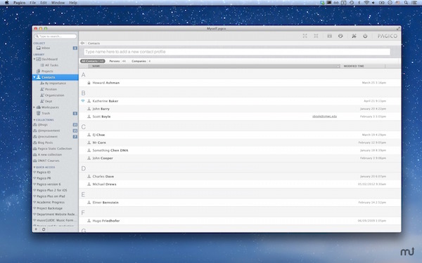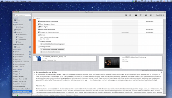 pagico mac版是國(guó)外一款功能強(qiáng)大的個(gè)人信息管理軟件,用戶(hù)可以使用本款軟件將自己的個(gè)人信息和其他朋友的信息輸入到電腦里,并且能夠讓你快速找到自己需要找的資料!