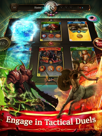 地核破碎元素(EarthCore: Shattered Elements)》同為卡牌游戲,玩法形式上也與《萬(wàn)智牌2015》、《爐石傳說》相似,融合了卡牌收集、戰(zhàn)斗、策略等元素。開發(fā)商他們充滿信心地表示,游戲?qū)嵙δ芘c《萬(wàn)智牌2015》、《爐石傳說》匹敵,甚至超遠(yuǎn)他們。該作卡牌的攻擊將采用與眾不同的方式,而不再是基于魔法打擊??ㄅ埔还卜譃槿N類別:水屬性、火屬性和自然屬性。每張卡都有相應(yīng)的數(shù)值,數(shù)值越大則攻擊力越大,戰(zhàn)斗中獲勝的機(jī)率也增大。但是,如果卡牌在對(duì)戰(zhàn)中死去,玩家將失去這張卡牌。