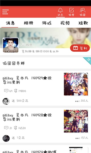 -飯團(tuán) 和同樣喜歡Kris的粉絲抱成團(tuán),大家一起聊天,打榜,CP,應(yīng)援,接機(jī)