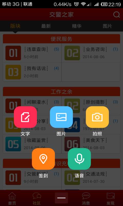 1.交警用戶(hù)可以在這里隨時(shí)隨地在線(xiàn)互動(dòng)、交流。2.車(chē)主用戶(hù)可以使用本軟件查詢(xún)愛(ài)車(chē)違章情況,在線(xiàn)咨詢(xún)駕駛相關(guān)的問(wèn)題。