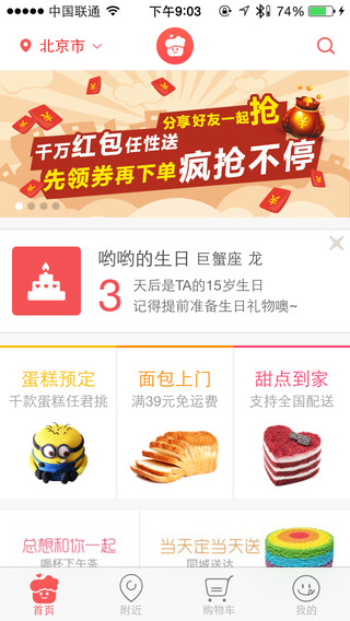 版本 1.4.2 中的新功能1、買(mǎi)蛋糕搶紅包,下單后發(fā)紅包與好友分享福利!