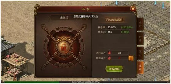魂珠分為太初魂珠、兩儀魂珠、三才魂珠、四象魂珠、五行魂珠、六合魂珠等20個等級,越高等級的魂珠能夠提供給佩戴者更高的暴擊率與暴擊力提升,當然,低等級的魂珠可以消耗一定數(shù)目的魂珠碎片進行升級?;曛樗槠鳛閭髌姘詷I(yè)手游魂珠升級的唯一材料,可以通過擊殺BOSS、參與活動、領取禮包等方式獲得,也可以在商城進行購買。