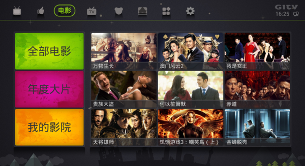 輪播頻道是荔枝TV面向電視推出的一個專屬頻道,目前有電影、動漫、電視劇、綜藝、脫口秀、紀錄片、旅游、體育、教育、軍事、網(wǎng)球、美式橄欖球、搏擊、高爾夫等14個子頻道,基本上能滿足全家人的觀看需求??摧啿ヮl道時可以通過遙控器上下鍵隨意更換頻道,就像看傳統(tǒng)有線電視一樣,另外按菜單鍵還可以查看當天的節(jié)目單,同樣可以隨意選擇。