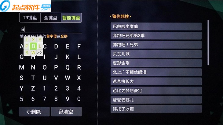 荔枝TV在搜索上提供了三種鍵盤:T9鍵盤、全鍵盤和智能鍵盤,其中智能鍵盤在其它APP上沒有的,在輸入一個字母后,它會進行詞義聯(lián)想,比如輸入字母“B”后,周圍會出現(xiàn)詞義聯(lián)想的關聯(lián)字母,能夠指向多個有關聯(lián)的搜索結果,不用再按遙控器去選擇下一個字母,省去了不少功夫,效率也提升了不少。