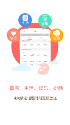 女生們扎堆討論,一起聊東聊西,從戀愛困惑到情敵危機,從曖昧關系到跟男票啪啪啪,從八卦吐槽到心情分享,從美妝護膚到服裝搭配,想說就說,最不好意思的話都有瓷肌懂你。