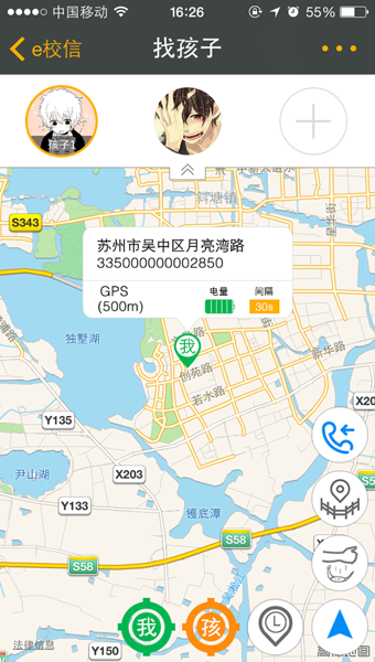 3.找孩子:通過孩子手腕上的手表,對孩子進行GPS與移動基站定位,有導(dǎo)航和軌跡回放等功能
