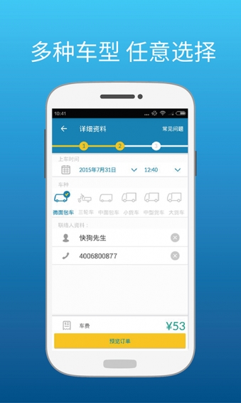 快狗速運(GoGoVan)是一款針對貨運的免費打車軟件,提供搬家服務、商業(yè)快遞、購物送貨、同城送禮和寵物接收等服務,為GoGoVan 中國內地版本。目前,快狗速運(GoGoVan)已全面進入中國內地市場,遍布北京、深圳、上海、廣州、武漢、青島等多個城市。GoGoVan 2013年成立于香港,致力于向用戶提供高質量產品和高效服務。平臺在兩年內成功獲取香港60%的同城貨運市場份額。目前平臺注冊司機7.4萬名,注冊貨車2萬輛,日均訂單超過1萬單。GoGoVan 的版圖正在擴張,我們的即時貨運服務已遍布內陸、新加坡、澳洲、韓國、臺灣等國家和地區(qū)。【軟件特點】
