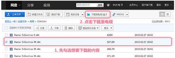 4.選擇網(wǎng)盤內(nèi)容,點擊下載到電視/盒子