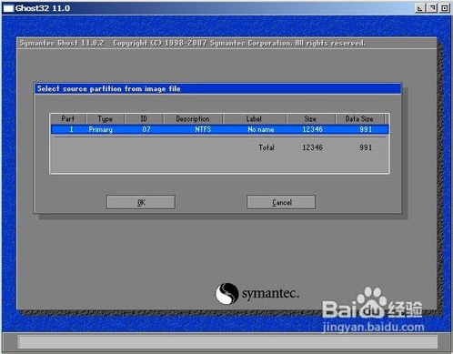 接著是從鏡像文件中選擇源分區(qū),由于一般只有一個源分區(qū),直接點OK即可
