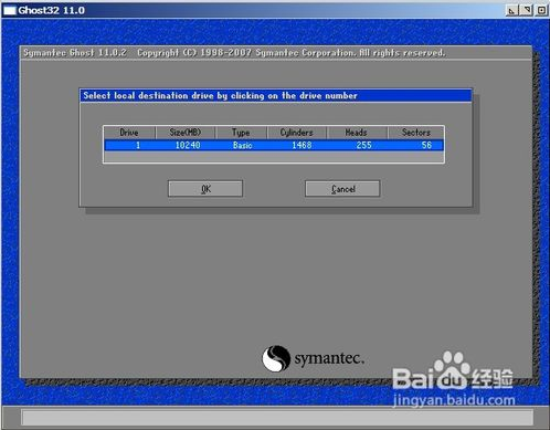 接下來的一步讓我們選擇要把剛才選中的鏡像源分區(qū)恢復(fù)到哪個本地磁盤,一般用戶如果只裝有一個硬盤那么直接點OK繼續(xù)