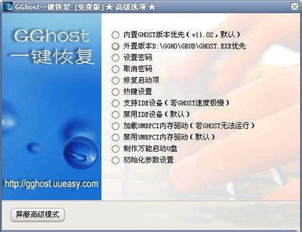 GGhost是基于ghost(v11)和grub4dos/grub2的免費系統(tǒng)備份和還原工具,簡單易用。支持SATA硬盤,支持多硬盤,支持隱藏分區(qū),支持HPA分區(qū)??蛇\行于Windows 2000/xp/2003/vista/7。通用性好,適用于硬盤,光盤,U盤(ZIP/HDD方式)啟動。gghost一鍵恢復(fù)工具是一款免費系統(tǒng)備份和還原工具,gghost一鍵恢復(fù)下載安裝有良好的兼容性、易用性與豐富的自定義功能,軟件界面簡介,操作簡單。