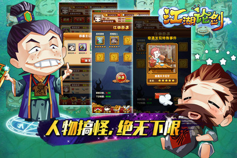 江湖論賤百度版是一款以武俠為主題材的卡牌RPG手游,以同名電影中的人物為原型、以劇情為背景而展開。招募與培養(yǎng)知名俠客,并不斷組建自己的團(tuán)隊(duì),與敵對(duì)的江湖惡勢(shì)力彼此征戰(zhàn)。江湖決斗,基情論“賤”。人物造型非常貼近電影中的主角形象,以萌系風(fēng)格重新演繹,喜歡的朋友,可千萬不能錯(cuò)過。