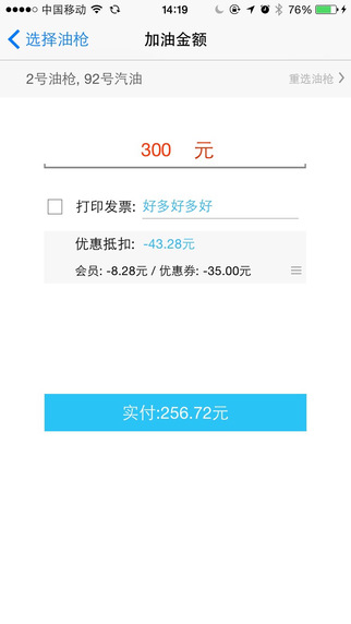 使用易加油,您不用帶錢包,也不用帶各種卡,只需帶著您心愛的手機;在油站,您不需要下車,您不需要排隊付款,只需要簡單掃描二維碼,用微信支付8s極速交費,發(fā)票也可以自動打印哦!