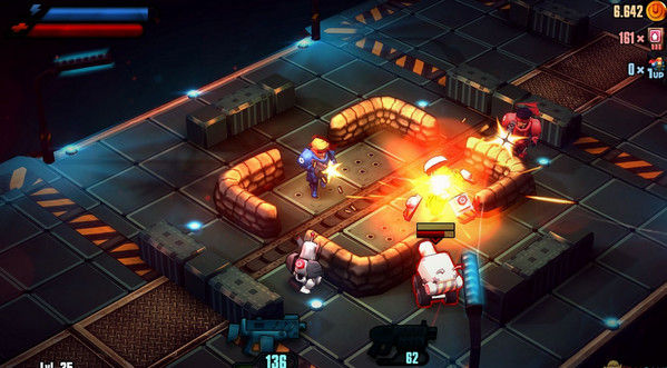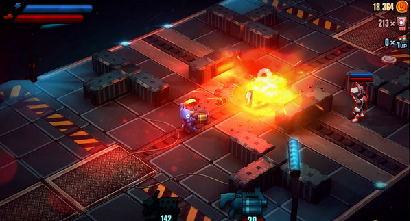 《熔毀》采用傳統(tǒng)的俯瞰視角,精細(xì)的3D畫面帶來(lái)強(qiáng)烈的科技感。游戲場(chǎng)景的光影明暗效果處理得相當(dāng)不錯(cuò),四處都洋溢著冰冷的金屬質(zhì)感。游戲的音樂(lè)節(jié)奏分明,讓你在體驗(yàn)這款游戲時(shí)候,有一種很爽快的感覺(jué),配合游戲中翻滾等動(dòng)作,給我們帶來(lái)動(dòng)動(dòng)感十足的體驗(yàn)。游戲中,每出現(xiàn)一個(gè)新的敵人,都會(huì)有精美的特寫鏡頭,這也為游戲增加了不少亮點(diǎn)。
