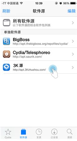 1、進入 Cydia 應(yīng)用,點擊“軟件源”欄目