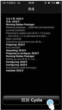 5、安裝完成后,點擊【回到Cydia】