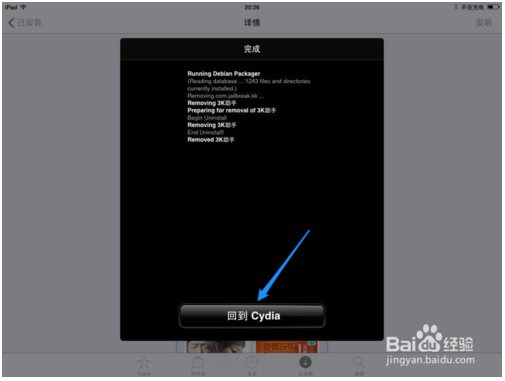 5、當(dāng)卸載完成以后,點擊“回到 Cydia”按鈕。