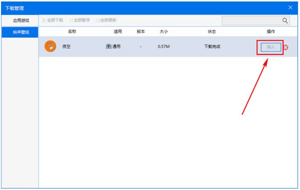 4、點擊進入下載管理==鈴聲壁紙==點擊導(dǎo)入