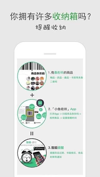 1、隨時(shí)隨地,時(shí)刻提醒:到期收納物品定時(shí)提醒,好記性不如好提醒;錄入的收納信息可以智能搜索查找。2、從此更安心更省心:打開小魚收納APP,點(diǎn)擊掃描二維碼或條形碼,拍攝收納圖片及說明描述。