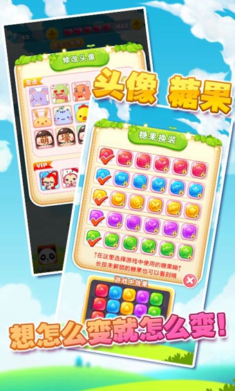 游戲玩法:點擊即可消除同色相鄰的糖果,操作簡單容易上手。輔助道具應有盡有,強化變身樂趣無限!模式多多:既能單機闖關(guān)挑戰(zhàn)極限,也能和其他玩家PK對戰(zhàn),更有機會和阿貍一較高下!