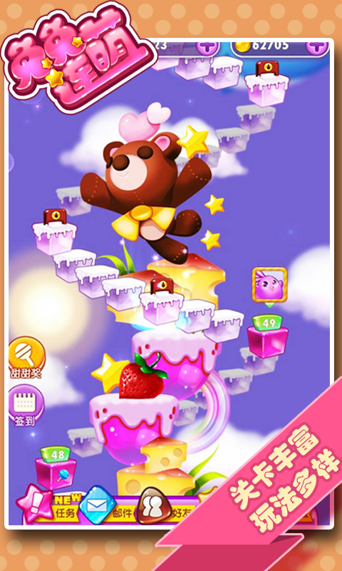 兔兔連萌是一款采用了創(chuàng)新的尋路消除玩法的Q萌卡通的萌寵消除游戲!游戲以超可愛超萌的寵物們作為主體,并有多種新鮮的玩法組合供玩家體驗(yàn)。