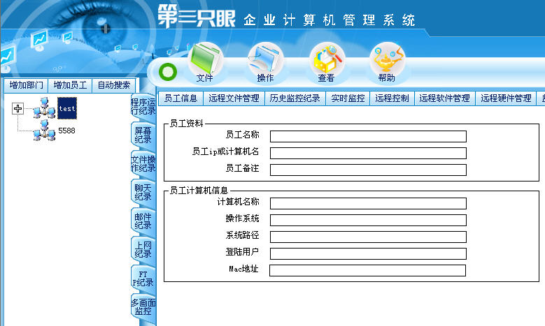 第三只眼破解版是一款專為企業(yè)管理員提供的網(wǎng)絡(luò)監(jiān)測(cè)軟件,能夠?qū)T工的上網(wǎng)、聊天、郵件、外發(fā)資料、ftp監(jiān)控、游戲等多方面內(nèi)容進(jìn)行監(jiān)控,能夠有效了解員工在上班時(shí)間的電腦使用情況。