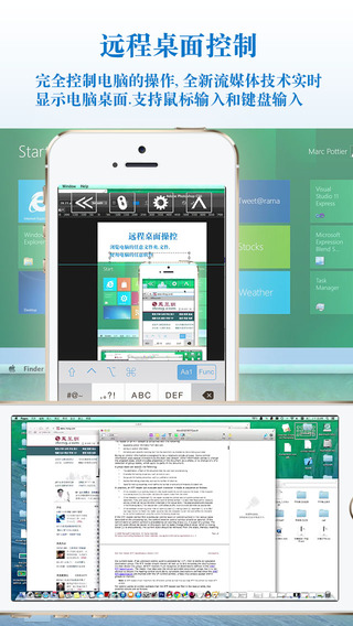 GoodRemote Desktop iPhone版獨(dú)家支持雙模遠(yuǎn)程控制方式,既流媒體遠(yuǎn)程桌面和VNC遠(yuǎn)程桌面,可以選擇更高效的流媒體遠(yuǎn)程控制,或者是不需要再安裝電腦客戶(hù)端的標(biāo)準(zhǔn)VNC連接方式,并支持多電腦平臺(tái),包括Windows,Mac,Linux,Unix。讓您通過(guò)本地網(wǎng)絡(luò)查看和編輯Word,Excel,PPT文檔和PDF文檔.用瀏覽器來(lái)瀏覽網(wǎng)頁(yè),玩3D電腦游戲,或者遠(yuǎn)程文件管理器.把您的電腦放在口袋中!