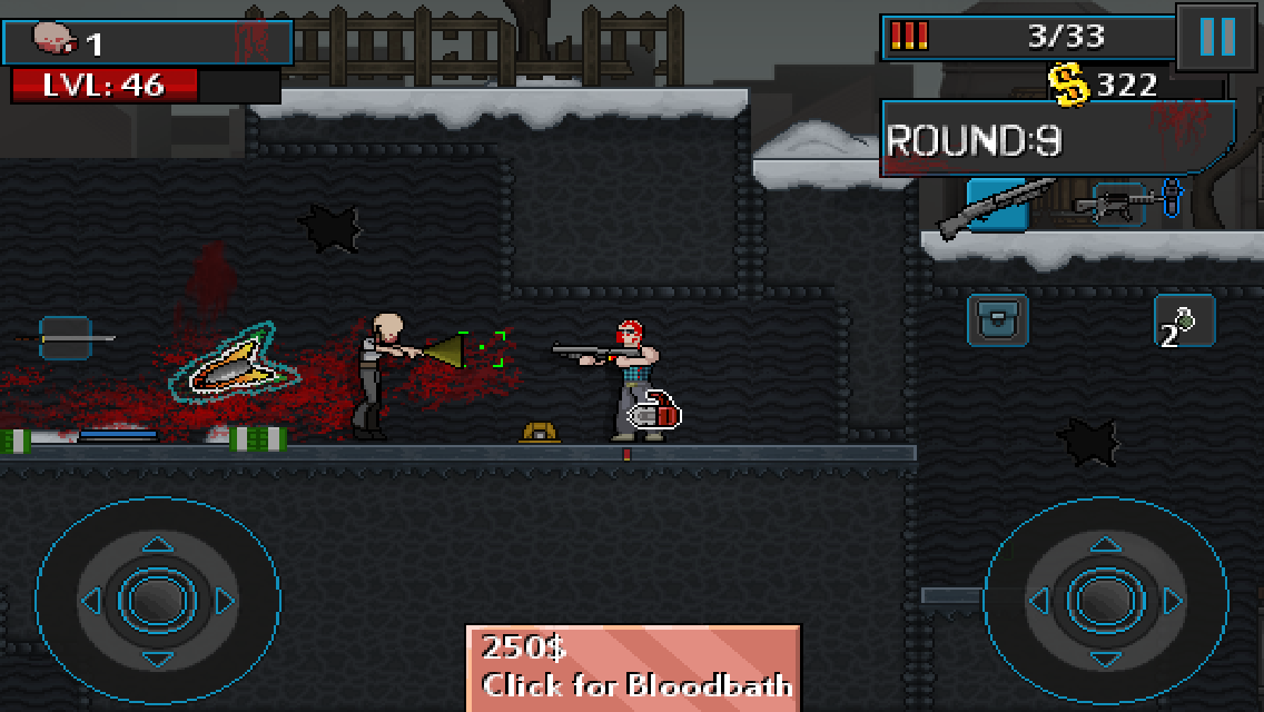 僵尸擊殺重生版是個13年時候的一個同名游戲的續(xù)尾成果,來源于更早之前的桌面平臺的較有名氣的獨(dú)立游戲的復(fù)刻。這個游戲的玩法類似使命召喚的僵尸模式,包括解鎖區(qū)域和購買槍支等,不同的地方在于這個游戲是像素2D風(fēng)格而且也沒那個3A游戲那么知名。