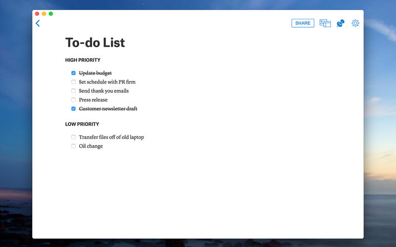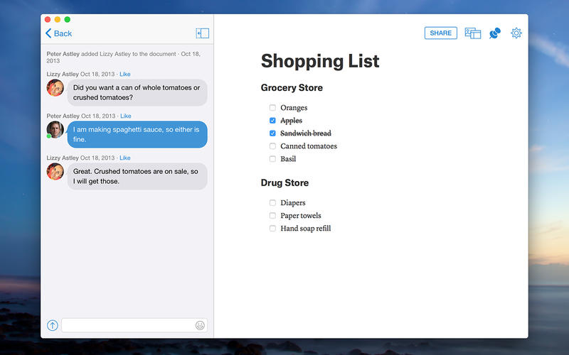 Quip Mac版是一個(gè)現(xiàn)代文字處理器,使得您可以在任意設(shè)備—手機(jī)、平板電腦和電腦上創(chuàng)建優(yōu)美的文檔。Quip Mac版將文檔和信息組合到一個(gè)聊天式的更新“線程”,實(shí)現(xiàn)了輕松的即時(shí)協(xié)作。無論是建立整理您的任務(wù)清單,或是組織公司內(nèi)部協(xié)作,還是為規(guī)劃家里或工作項(xiàng)目而實(shí)施文件夾共享,所有Quip功能都可以在離線時(shí)完美操作,并在一旦聯(lián)網(wǎng)實(shí)現(xiàn)時(shí)同步更新。